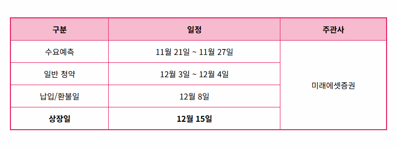 이러한 높은 경쟁률로 인해 1억 원의 증거금을 넣은 투자자는 약 4주를 배정받을 것으로 예상됩니다. 이제 모든 투자자들의 시선은 상장일로 향하고 있습니다.