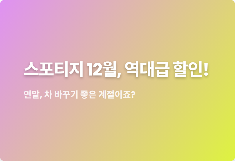 2025년 마지막 달, 12월이 다가왔습니다.연말을 맞아 자동차 시장에 풍성한 소식이 가득한데요.국민 SUV 스포티지의 특별한 할인 혜택이 기다리고 있습니다. 🥳