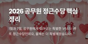 경제 2026 공무원 정근수당 지급기준, 저연차 현실적인 혜택 총정리 (가산금 포함) 매년 두 번, 공무원들의 통장을 두둑하게 만들어주는 정근수당! 특히 2026년에는 저연차 공무원들의 사기를 북돋아 줄 아주 반가운 소식이 있습니다. 오랫동안 공직 사회의 허리를 받쳐온 중요한 수당이지만, 그동안은 길게 …
