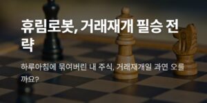 경제 휴림로봇 거래정지 후 주가, 재개일 현실적인 투자 전략 최근 로봇주 열풍의 중심에 있던 휴림로봇 주식이 하루 동안 거래정지되는 초유의 사태, 다들 놀라셨죠? 투자경고 종목 지정에도 불구하고 계속해서 뜨겁게 달아오르자 결국 한국거래소가 잠시 쉬어가라는 신호를 보낸 것인데요. …