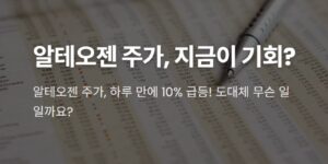 경제 알테오젠 주가 전망, 10% 급등! 지금 사도 괜찮을까? 현실적인 분석과 꿀팁 최근 바이오 대장주 알테오젠의 주가가 심상치 않습니다. 바로 어제, JP모건 헬스케어 콘퍼런스에서 나온 소식 하나로 투자자들의 기대감이 폭발하며 주가가 10% 이상 치솟았는데요. 고령화 사회로 접어들면서 만성 질환 환자들이 …
