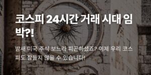 경제 코스피 24시간 거래 현실? 외환시장 개방부터 우리 개미 투자자 대처 방법까지! 최근 한국거래소(KRX)가 코스피 시장의 24시간 거래 추진 계획을 밝히면서 투자자들의 관심이 뜨겁습니다. 단순히 거래 시간이 늘어나는 것을 넘어, 국내 주식 시장의 판도를 바꿀 수 있는 중대한 변화인데요. 과연 …